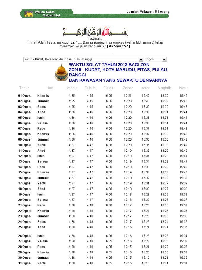 Waktu Solat Kota Marudu Ogos 2013 Pdf